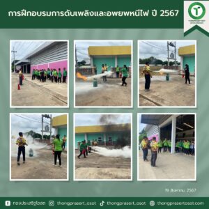 ทองประเสริฐโอสถ ได้ดำเนินการ จัดการฝึกอบรมหลักสูตร “การฝึกซ้อมดับเพลิงและฝึกซ้อมอพยพหนีไฟ” ประจำปี 2567 มีวัตถุประสงค์เพื่อให้สอดคล้องตามที่กฎหมายกำหนดให้นายจ้างต้องจัดให้มีการอบรมและฝึกซ้อมแผนป้องกัน และระงับอัคคีภัยอย่างน้อยปีละ