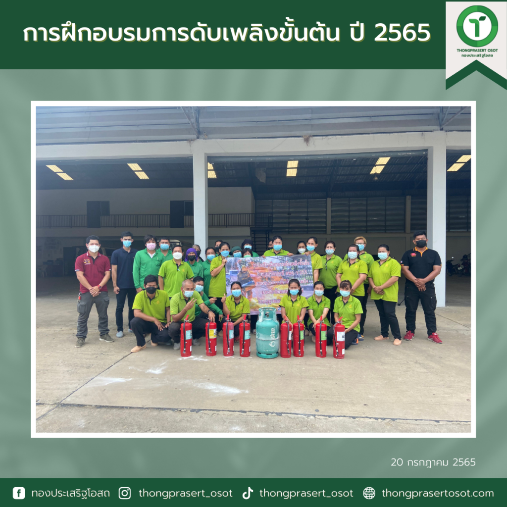 ทองประเสริฐโอสถ ได้จัดให้มีการฝึกอบรมหลักสูตร “การดับเพลิงขั้นต้น และอพยพหนีไฟ” ประจำปี 2565 ในวันพุธที่ 20 กรกฎาคคม 2565 เวลา 09.00-16.30 น. ณ โรงงานทองประเสริฐโอสถ